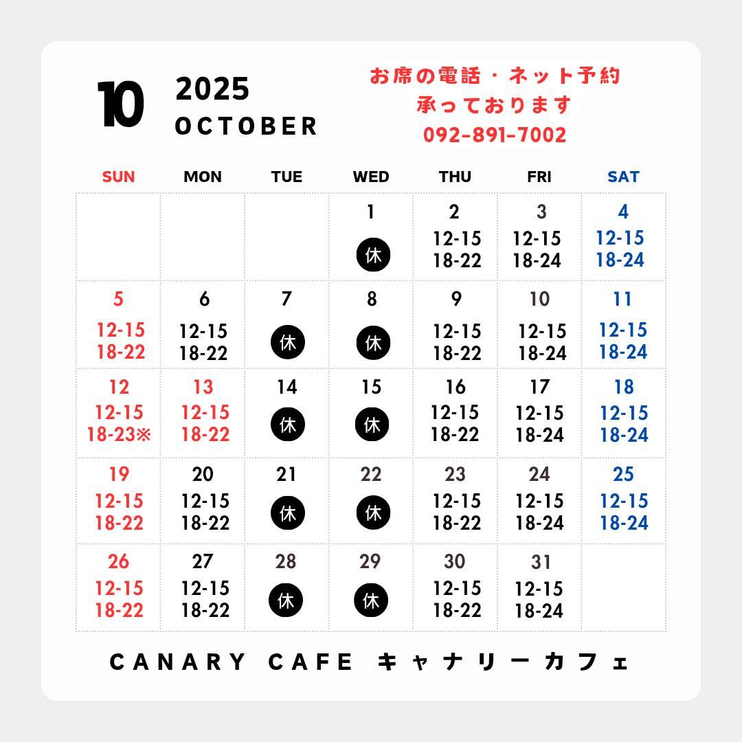 | 2022年10月4日 | 9月中旬〜10月中旬にかけて、キャナリーカフェで働く仲間が新しく入りました!研修を行いながらの営業となります。現在、調理をオーナーシェフ一人で行っている為、お待たせしてしまうことが多くあるかと思います。 ご迷惑をおかけしますが、スタッフ一人ひとりが育ち、また、お客様へは楽しんでいただけるよう、今後も取り組んでいきますので、どうぞ、温かい目で見てていただけたらと思います。よろしくお願いします‼ |
